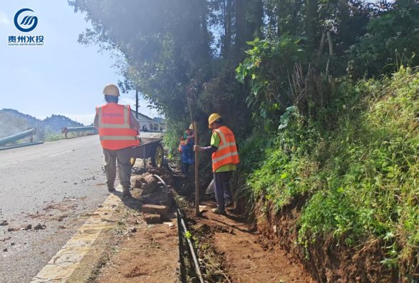 开阳县高寨乡农村规模化供水工程牛雍堆水池-X19段管沟人工开挖施工现场