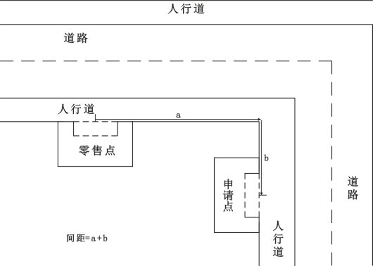 7.申请人的经营场所门面多面(多间)贯通且多面经营的,取与最近零售点距离最短的一面进行测量。