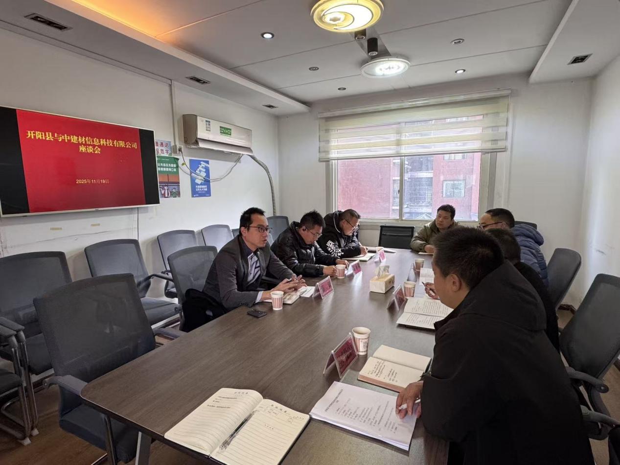 2025年11月19日上午,中建材信息科技有限公司赴我县考察座谈,并在县商促局三楼会议室举行座谈会议。会议由县安商服务中心主任詹超主持,中建材信息科技有限公司销售总监蔡策、贵州区域负责人高瀚卿,以及县商促局、县交通局、经产投公司相关负责人参加。
