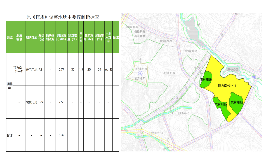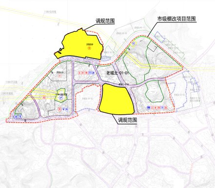 (二)主要调整内容:一是优化老城北-01-01地块用地边界,将现状四中及周围部分住宅用地调整为中小学用地,原规划四中地块调整为城镇住宅用地和中小学教育用地;二是将顶方南-01-11地块住宅用地调整为中小学教育用地。