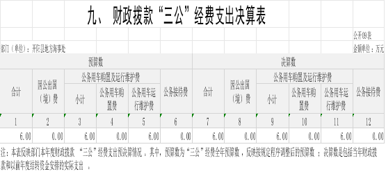 “三公”经费:纳入同级财政预决算管理的“三公”经费是指用财政拨款安排的因公出国(境)费、公务用车购置及运行费和公务接待费。其中,因公出国(境)费反映单位公务出国(境)的住宿费、旅费、伙食补助费、杂费、培训费等支出;公务用车购置及运行费反映单位公务用车购置费及租用费、燃料费、维修费、过路过桥费、保险费、安全奖励费用等支出;公务接待费反映单位按规定开支的各类公务接待(含外宾接待)支出。