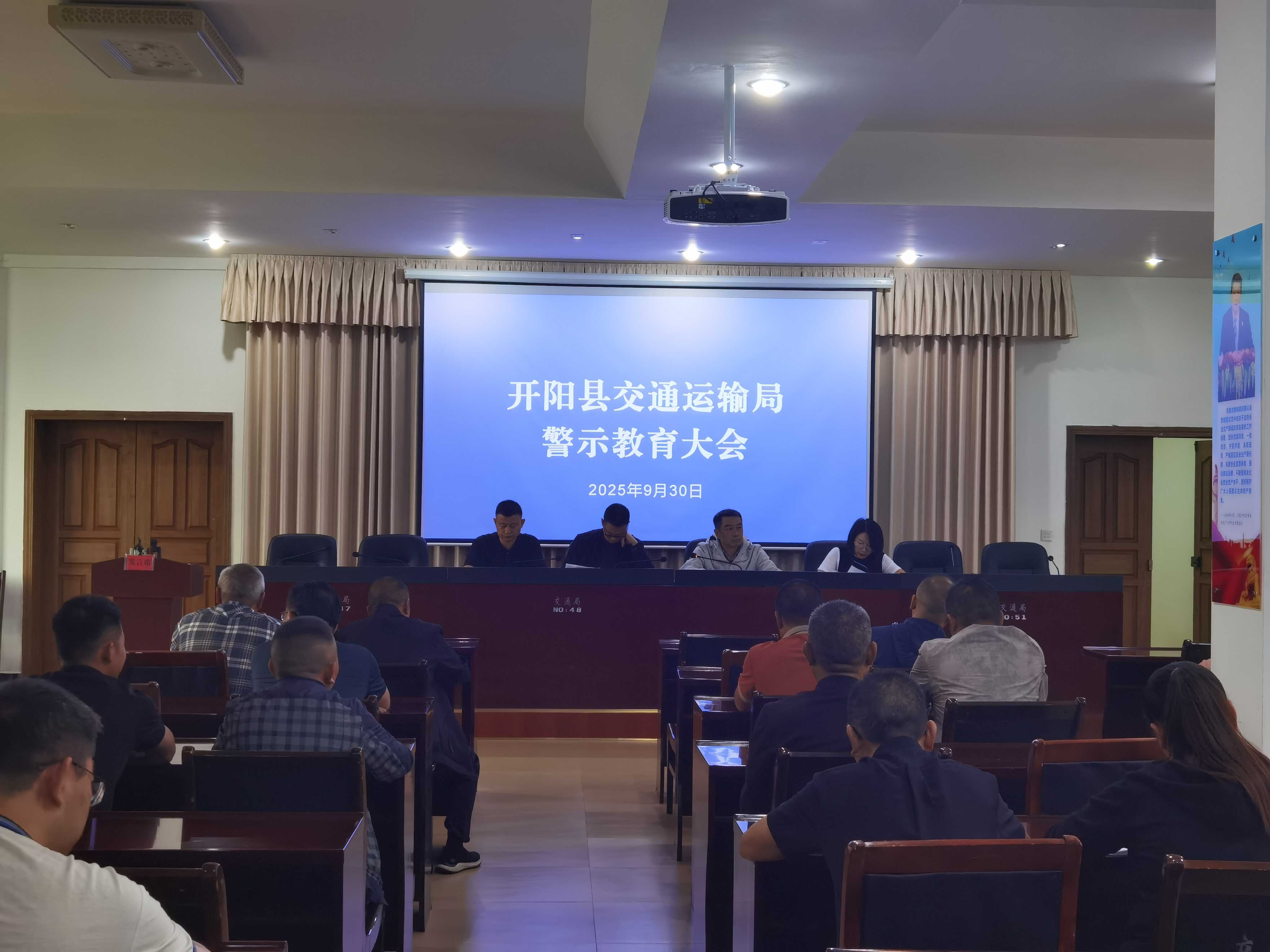 9月30日,开阳县交通运输局召开全局干部职工警示教育大会,进一步敲警钟、明纪律、强责任,筑牢干部职工思想防线。局党委委员、副局长杨斌主持会议,全体干部职工参加。