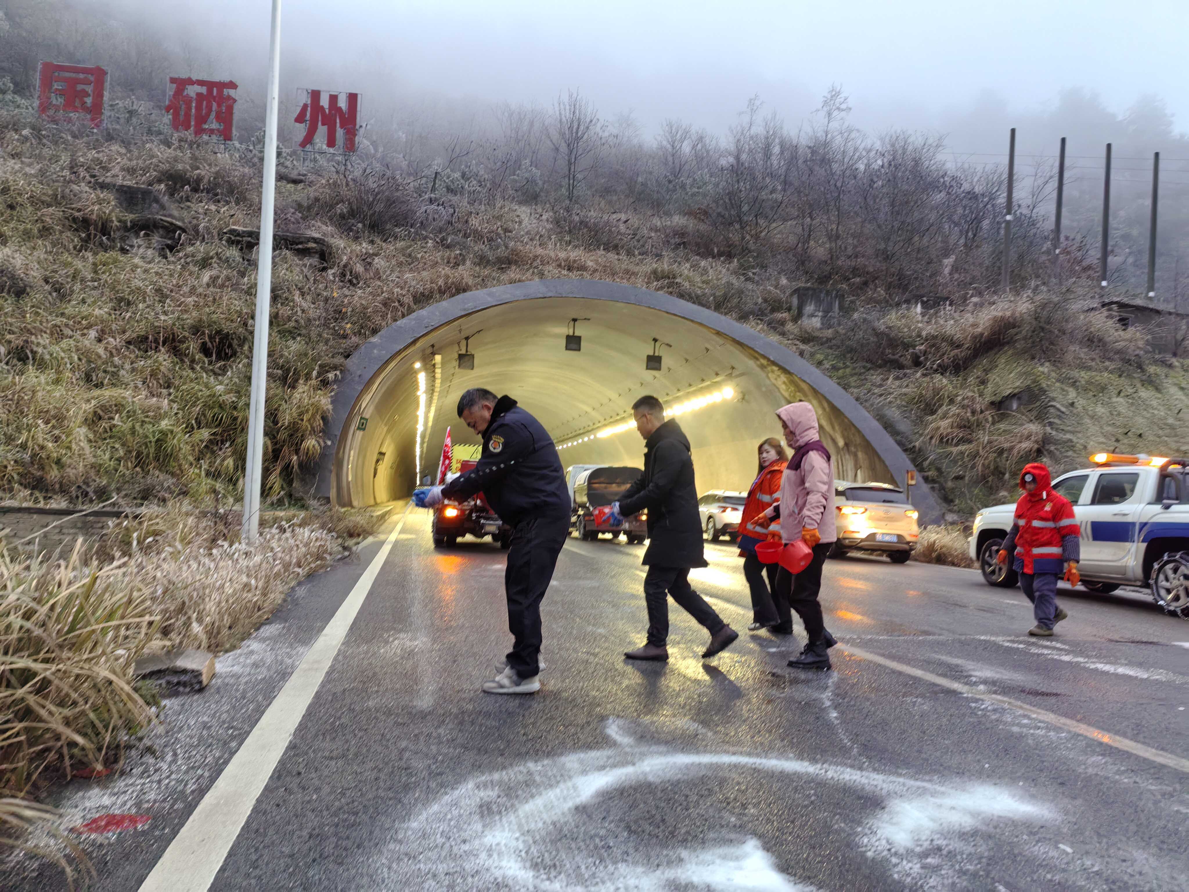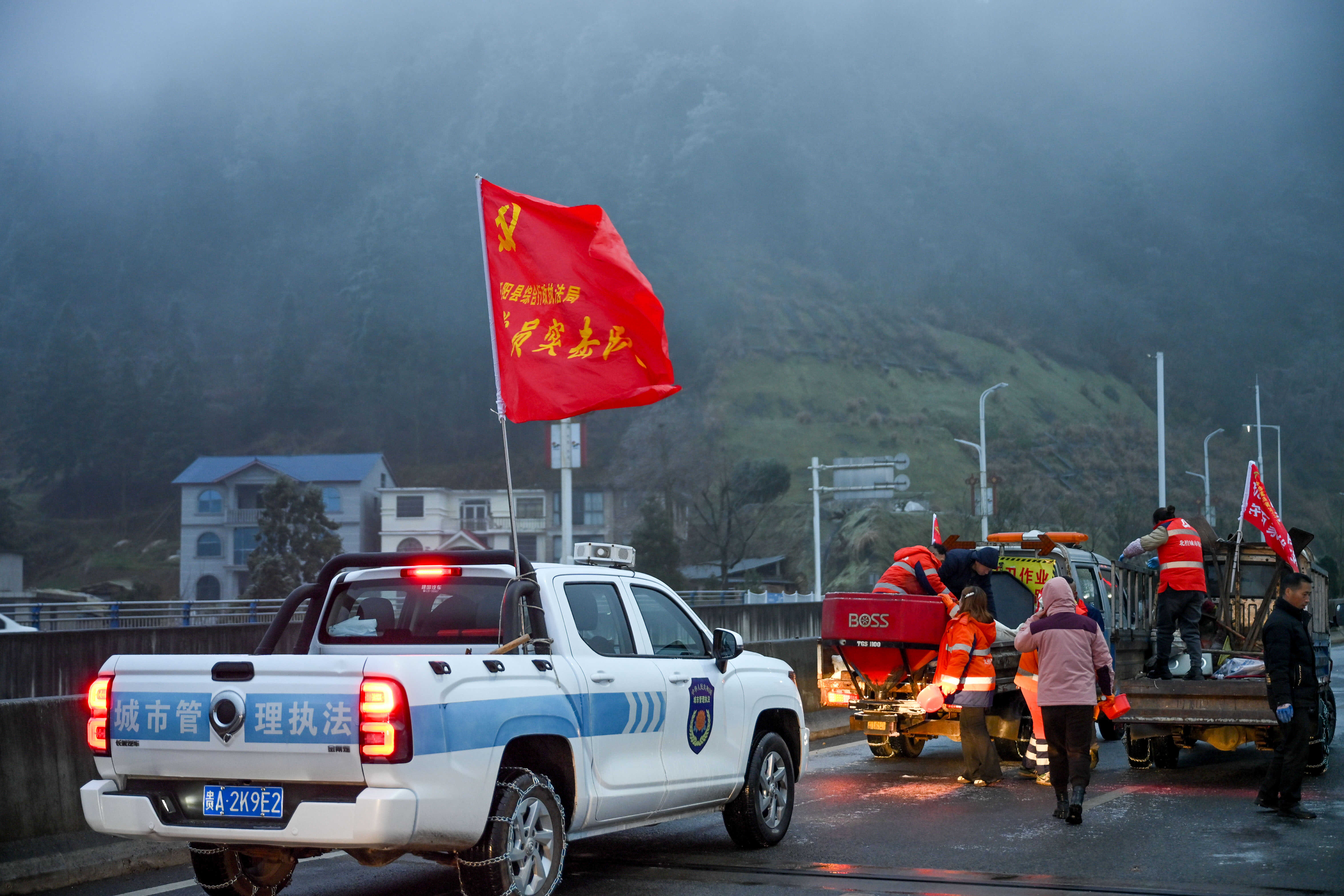 面对低温雨雪凝冻天气,为保障群众生命财产安全,开阳县综合行政执法局立即启动应对低温雨雪凝冻灾害天气应急预案,提前召集低温雨雪凝冻灾害防范应急队伍,由局领导带领全局党员干部职工和环卫工人冲锋一线,对辖区内硒州大道、桥梁、人行天桥(人行通道口)、公园广场出入口等易结冰路段进行巡查,并采取机械和人工相结合撒融雪剂、铁铲清除积雪等方式,做好应急处置和抗凝抢险工作。及时向应急部门和县总值班室上报城区凝冻路段处理和通行情况,进一步加强与气象、交警等部门的沟通联动,提升协同处置能力和工作效率。