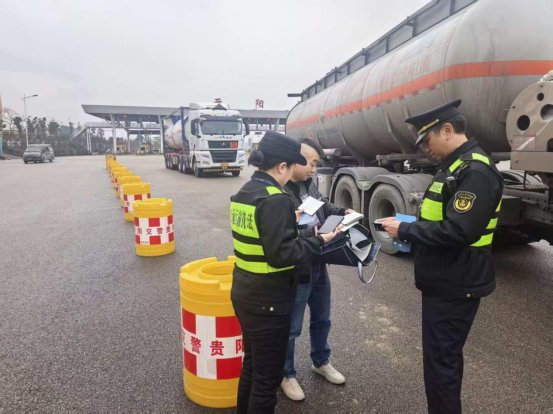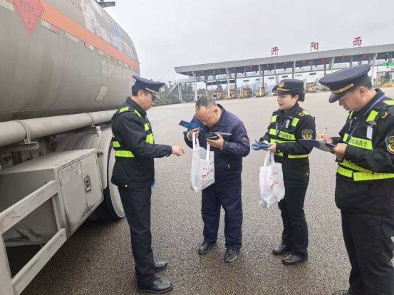 近期,正值春运高峰,返乡车流、人流持续攀升,为筑牢道路交通安全防线,让过往司乘人员感受旅途温情,2月5日,开阳县交通运输综合行政执法大队联合贵州省交通执法一支队七大队、贵阳市公安局交通管理支队高速二大队等单位,在开阳高速西收费站站前广场开展“执法护航+温情服务”春运联合行动,合力守护群众平安返乡路。