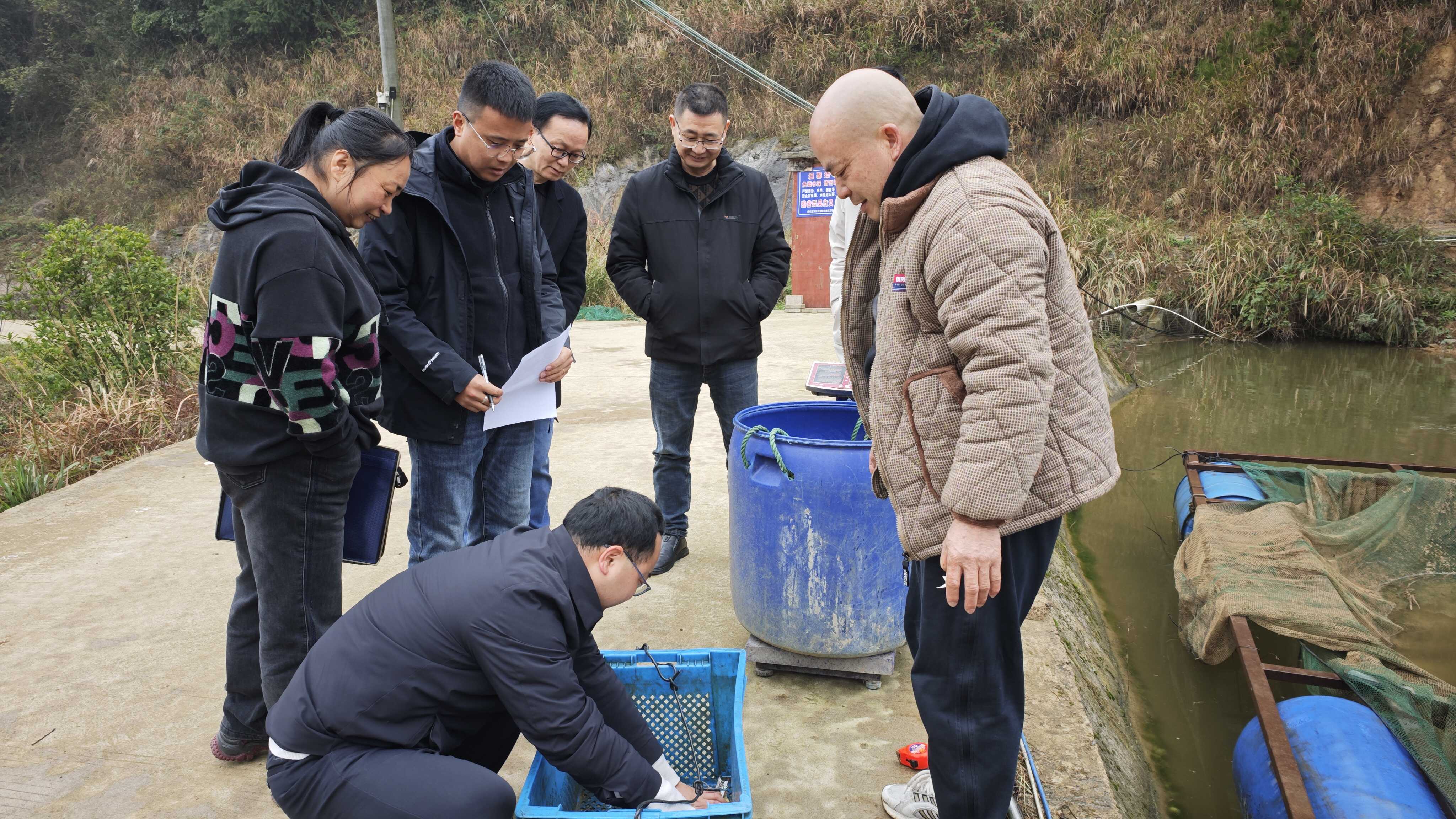 近日,开阳县农业农村局组织工作组到紫兴街道顶方村,对渔业产业项目进行实地测产及验收
