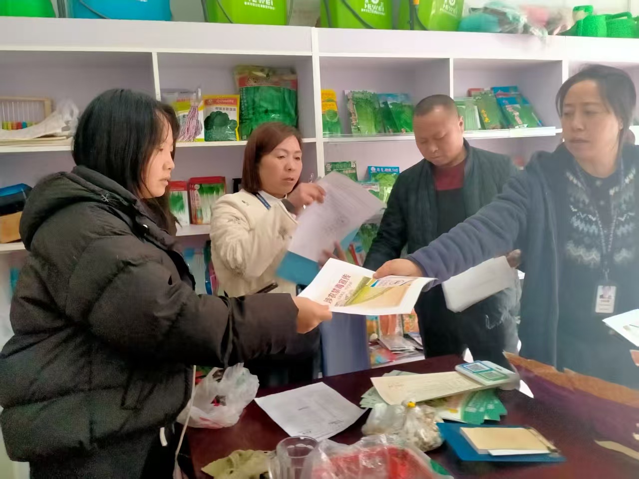 同时,组织执法力量对各乡镇种子、农药经营门店进行全覆盖核查。核实营业执照、农药经营许可证等是否齐全有效,是否存在销售未审定品种、未登记品种、退出品种等违法行为,是否存在销售过期农药、禁用高毒农药以及标签标识不规范、虚假宣传等违法行为。坚持执法与普法结合,向农资经营者和前来购种的农民普及宣传《中华人民共和国种子法》《农药管理条例》等法律法规,引导经营者诚信守法经营,指导农民到正规门店购买合格产品,并索要保存好购货凭证,提升维权意识。