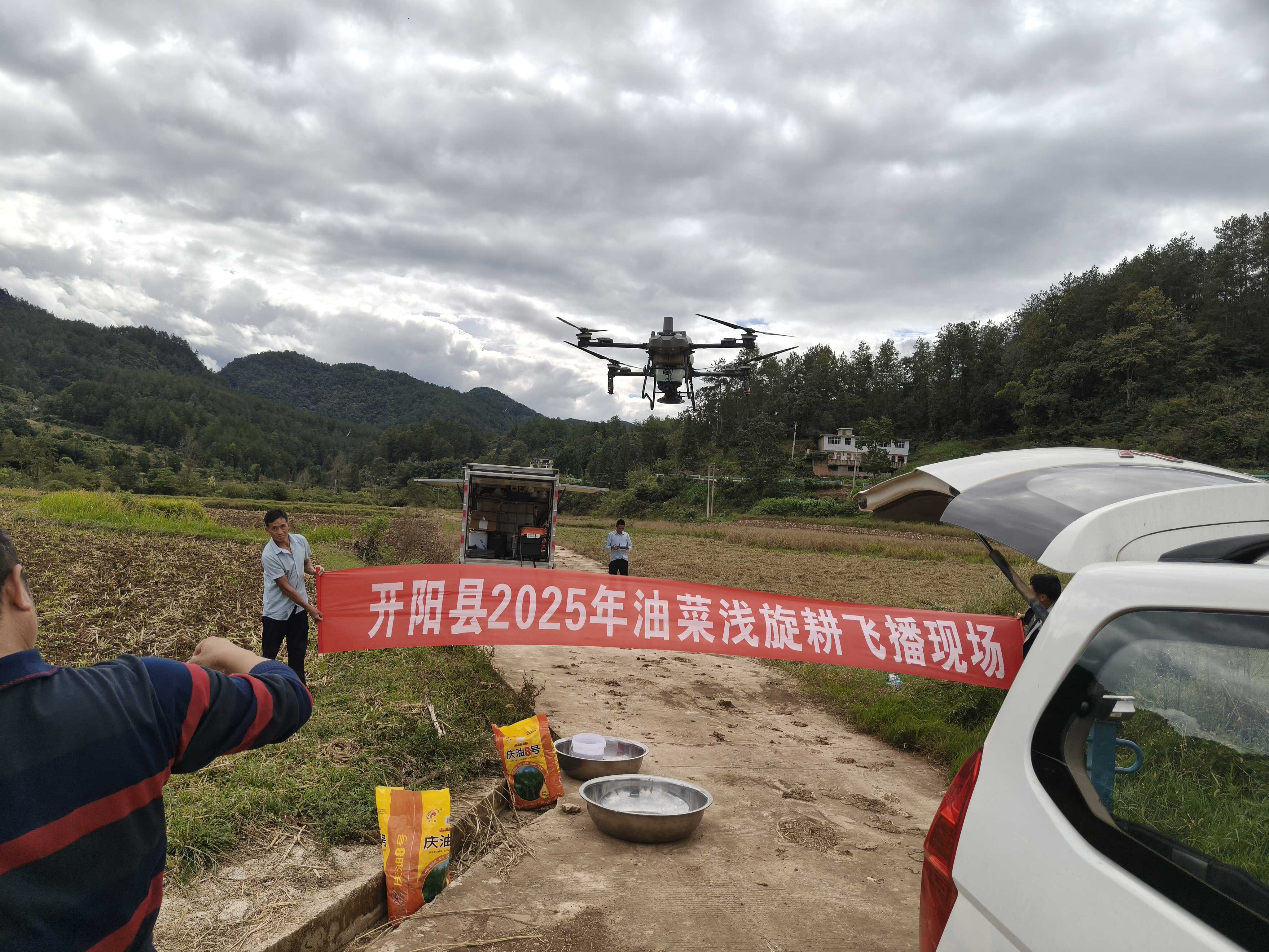 “近年来,十字村股份经济合作社始终坚持新发展理念,不断推动新型农业产业创新发展,这次是我们与开阳县农业农村局、贵州农无忧农业发展有限公司首次联合开展无人机油菜飞播试验,这也标志着咱们村在稻油轮作的耕种管收上实现了全程机械化!”十字村党总支书记、村委会主任付沧海欣喜地介绍道。开阳县农业农村局农推中心技术员饶永峰也向围观群众算了笔“效率账”,“无人机“飞播”效率是传统人工的数十倍,今天计划完成的200亩播种任务,靠人力得好几天,现在一天就能轻松搞定。从成本上算,飞播费用仅15元/亩,人工至少要150元/亩,机械化操作不仅省时省力,还能达到节本增效、增产增收的目的。