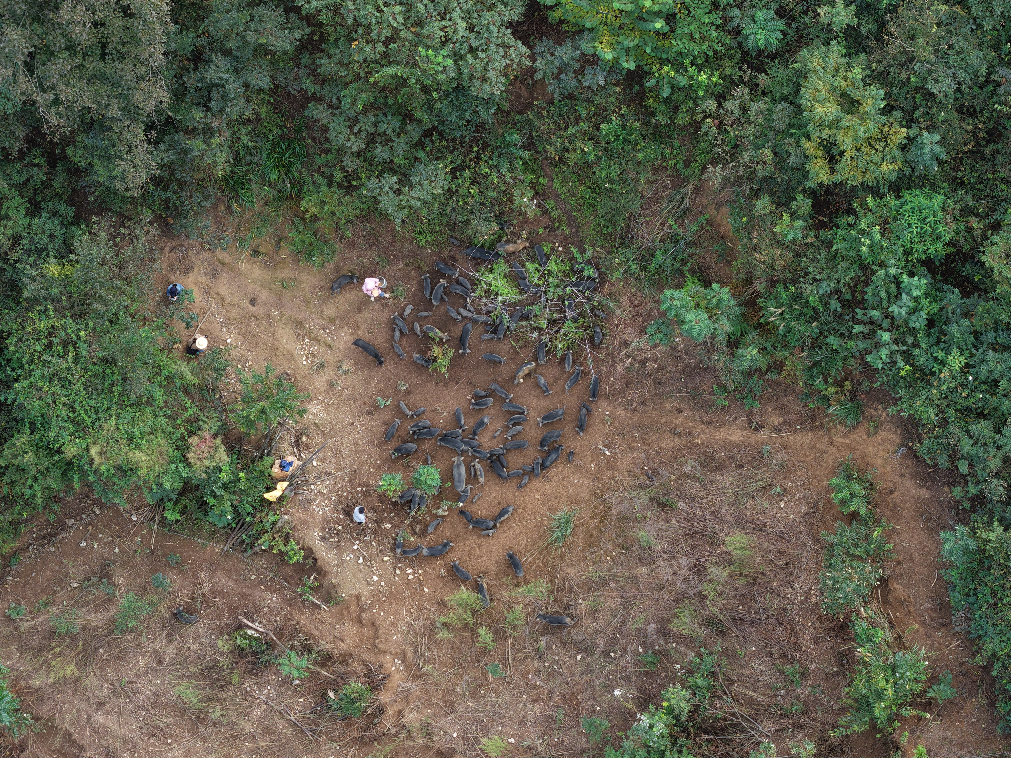 深秋雨后,开阳县高寨乡久场村大坡脚组的村民罗建像往常一样背着满篓应季蔬菜走向后山,一声哨响,上百头藏香猪从林间纷纷钻出,围拢抢食,山林间顿时充满生机。