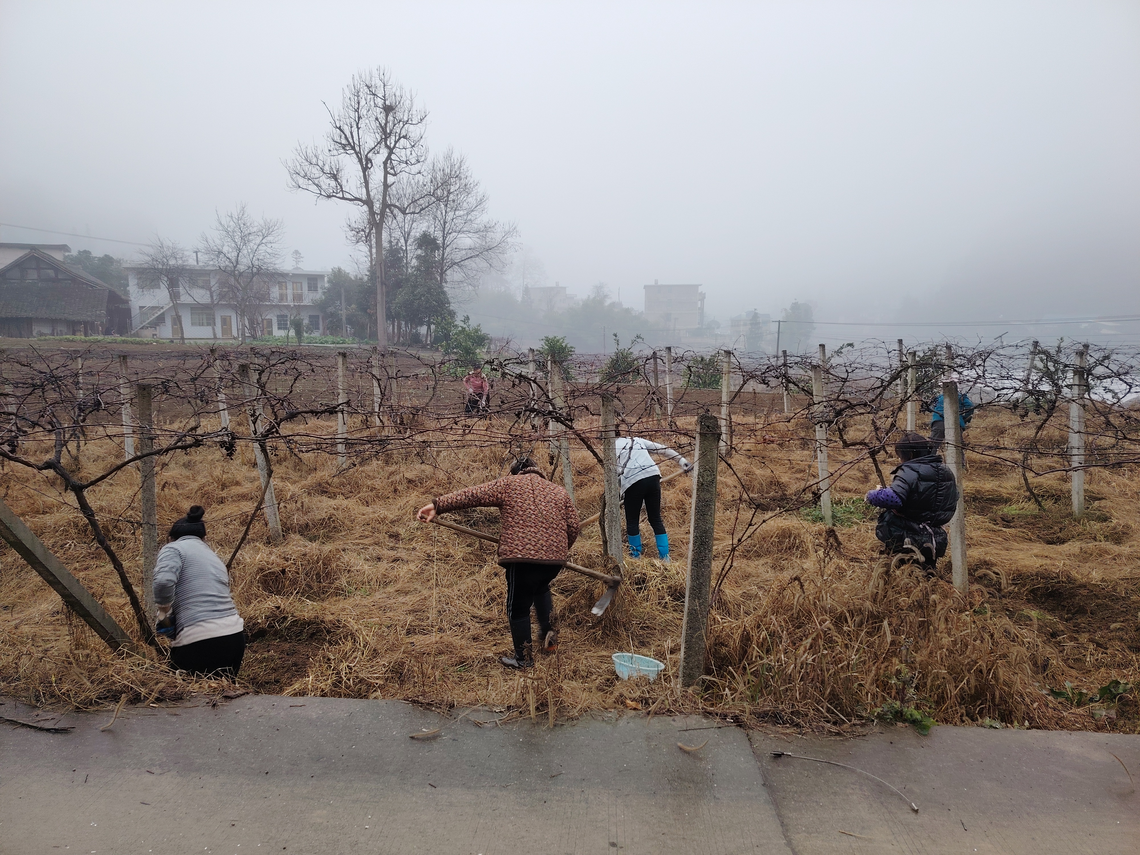 春风拂过冯三大地,辉黔村50亩水晶葡萄种植基地已是一片繁忙景象。清晨,村民们手持锄头在田垄间穿梭,铁犁翻起的泥土带着青草芬芳,露珠在新抽的藤蔓嫩芽上滚动,奏响了春耕生产的序曲。