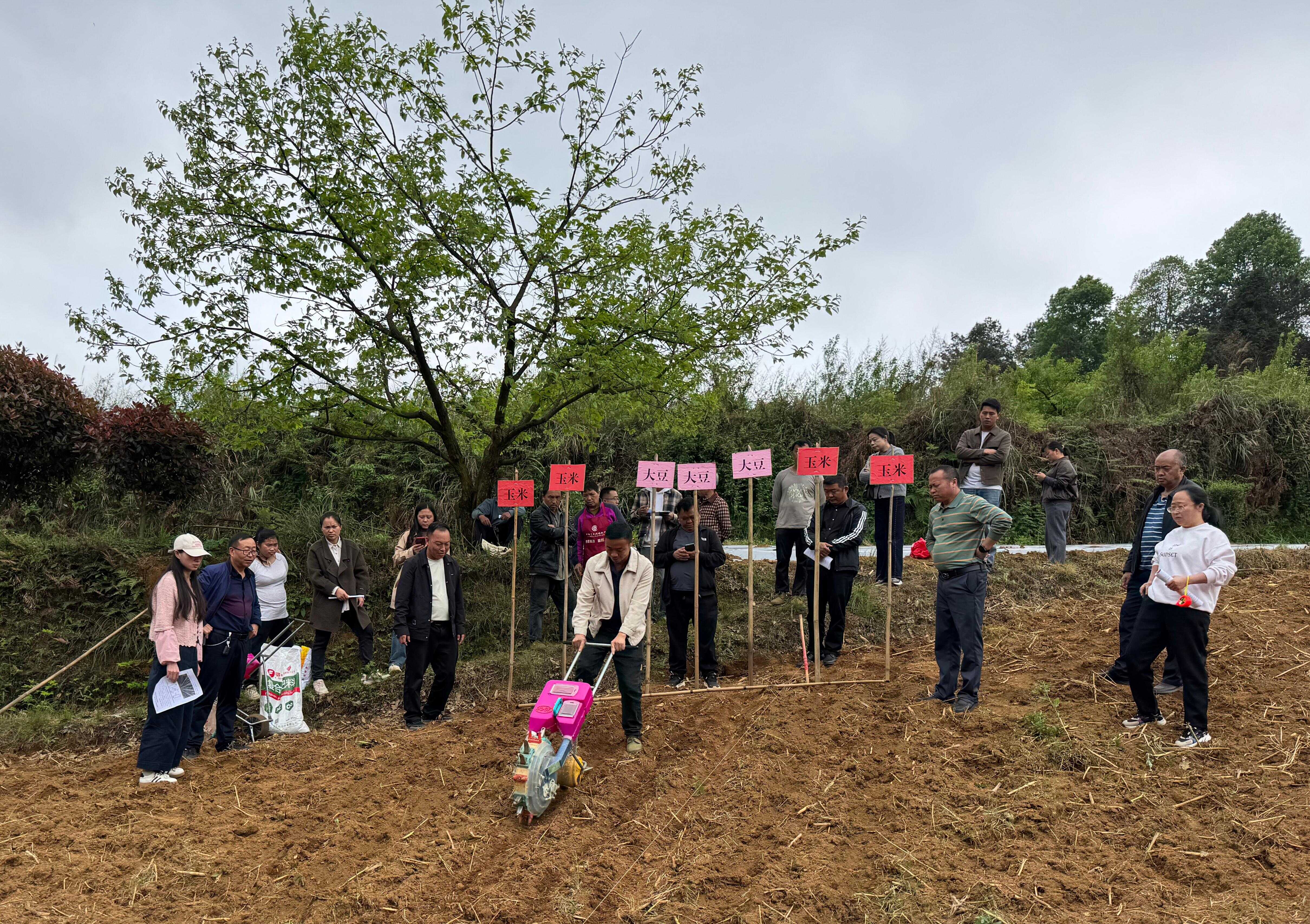 实操环节,农技人员与本土种植能手现场演示传统种植与滚动式增容施肥播种器操作,手把手指导播种、施肥要点,农户们主动上手、积极提问。培训还明确了种子免费发放、每亩将获得一定补助等惠农政策,进一步激发群众种植积极性。