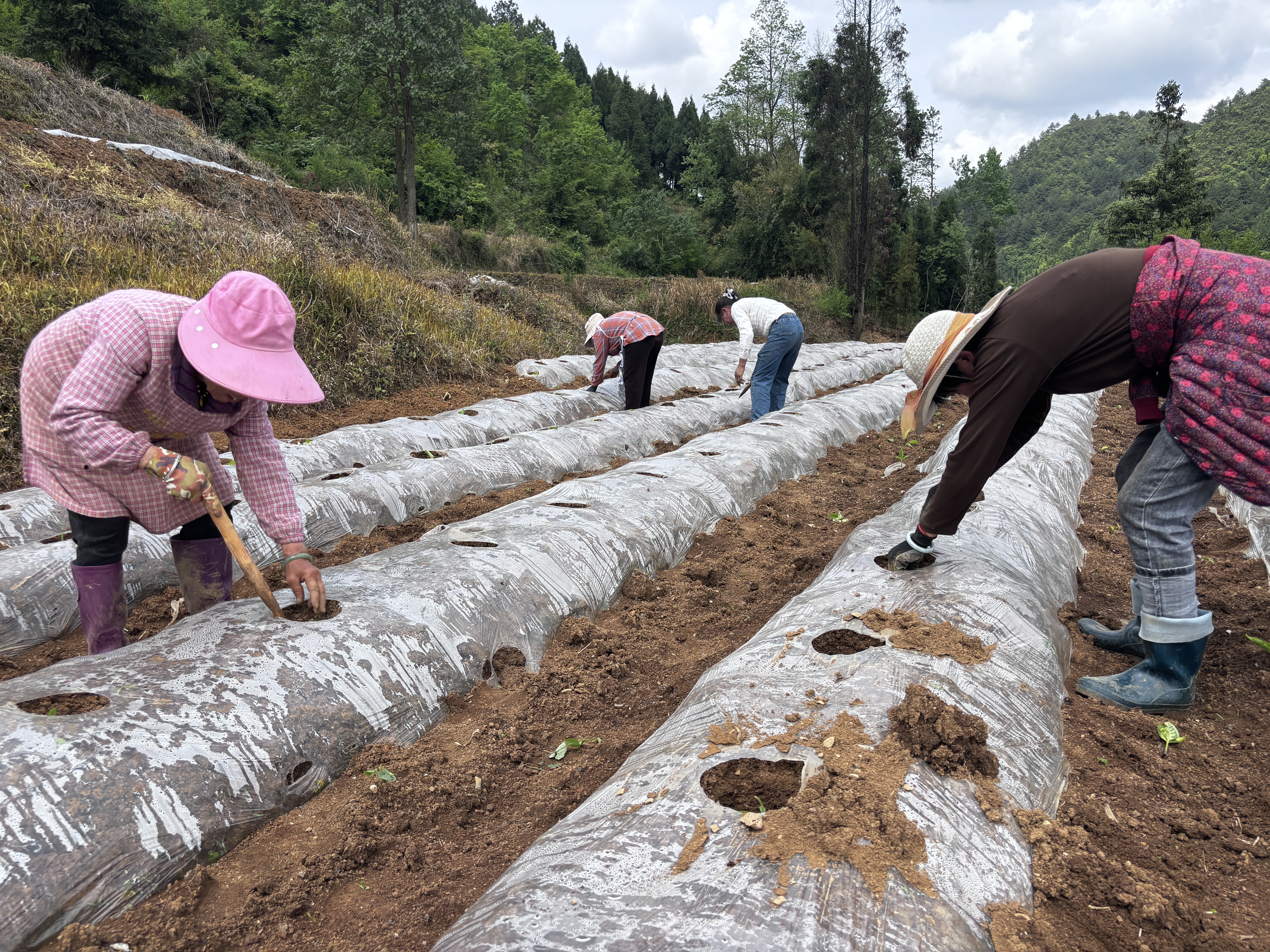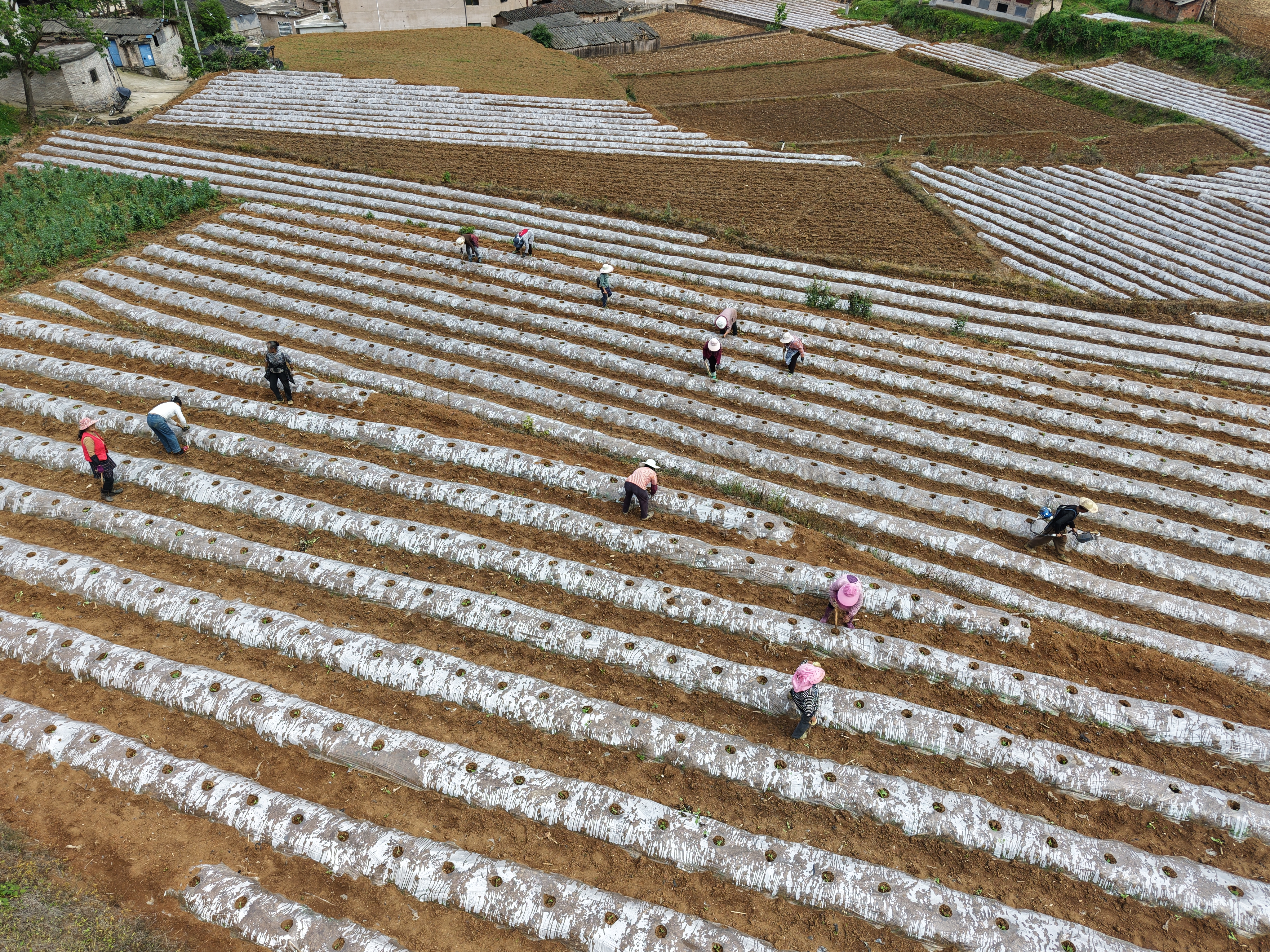 在该乡谷丰村等烤烟种植片区,连片烟垄覆膜规整,白色地膜在阳光下排列齐整。烟农们三五成群、分工协作,有序开展覆膜打孔、放苗定植、覆土压实、定根浇灌等工序,一株株鲜嫩烟苗整齐扎根沃土,孕育着乡村振兴的新希望。