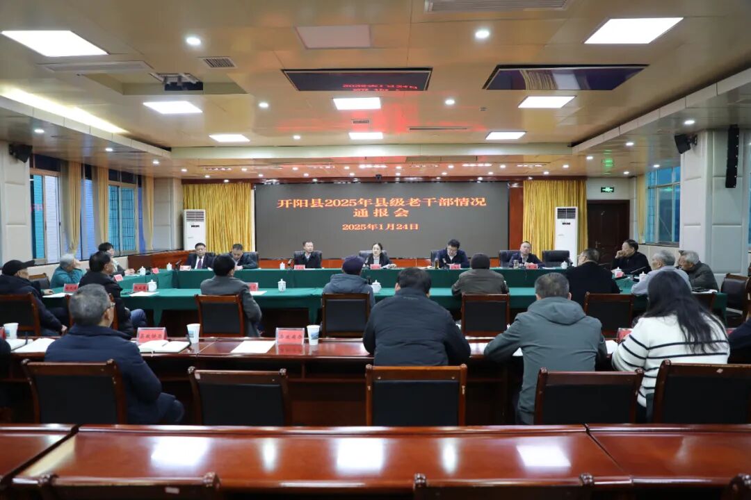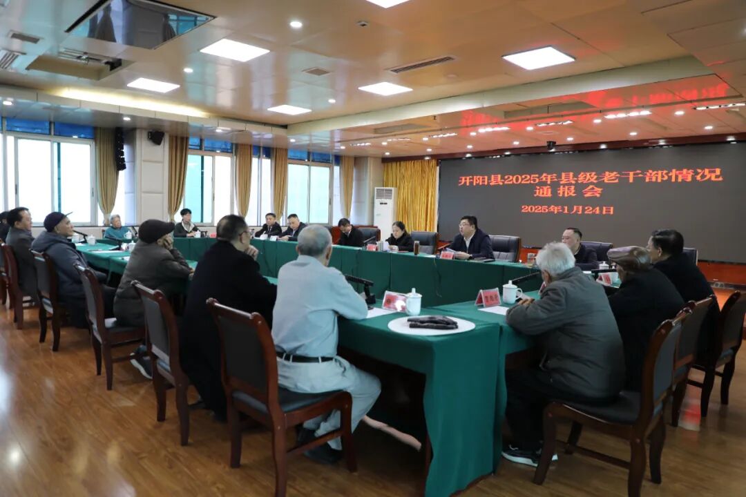 1月24日,开阳县召开2025年县级老干部情况通报会,传达学习省、市“两会”精神,通报全县2024年经济社会发展情况和2025年经济社会发展工作打算、开阳经开区建设发展情况。