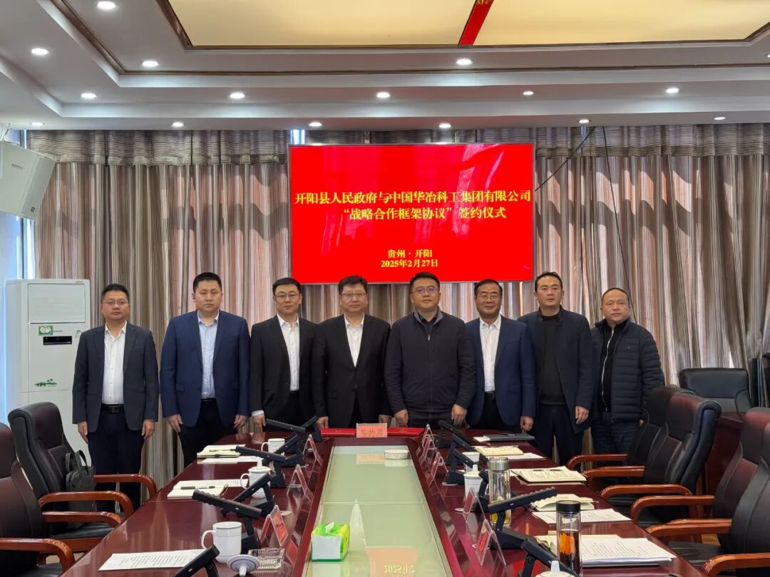 2月27日,开阳县人民政府与中国华冶科工集团有限公司成功签署战略合作框架协议,双方将在矿山建设运营、磷氟化工园区建设、基础设施建设、矿产资源开发等领域深化合作。