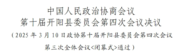 中国人民政治协商会议第十届开阳县委员会第四次会议,于2025年3月8日至10日在开阳县城举行。