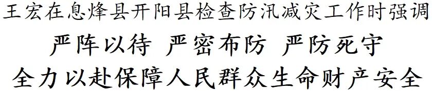 检查中,王宏强调,防汛减灾工作责任重大、任务艰巨。各级各部门要坚决克服麻痹思想和侥幸心理,以“时时放心不下”的责任感,抓细抓实防灾减灾救灾各项工作。要强化隐患排查,聚焦重点部位和关键环节排查各类风险隐患,分级分类落实防范应对措施。要强化应急准备,加强应急演练和物资储备,确保关键时刻拉得出、冲得上、打得赢。要强化宣传引导,提前组织危险区域群众转移避险,妥善安置受灾群众。要强化责任落实,加强信息报送和应急值守,确保安全平稳度汛。