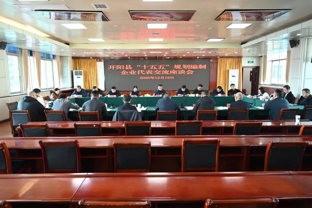 12月19日,开阳县召开“十五五”规划编制企业代表交流座谈会,宣讲党的二十届四中全会精神,深入学习贯彻省委十三届八次全会、市委十一届十一次全会精神,听取企业家代表对“十五五”规划编制的意见建议。