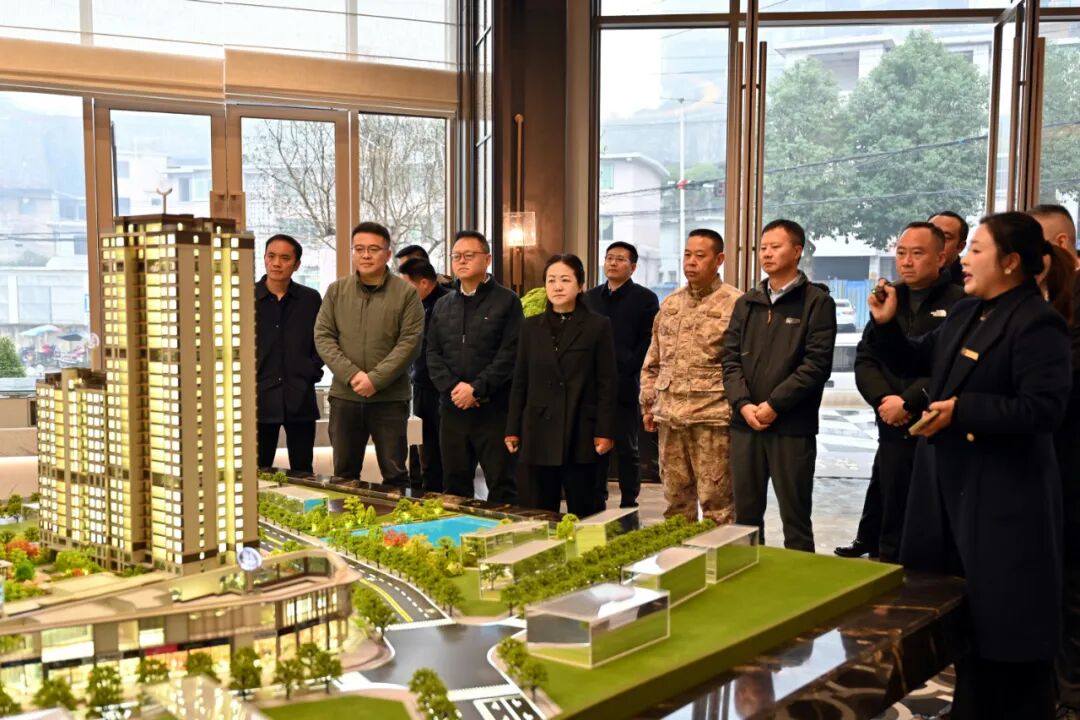 当天上午,县委和开阳经开区党工委理论学习中心组成员来到乾麟龙·观宸楼盘营销中心,通过看现场、听汇报等方式,深入了解商品房销售、项目建设进度及配套基础设施建设等情况。在开阳旺德·时代广场楼盘,大家仔细察看项目现状,并听取项目建设和回迁安置工作推进情况汇报。