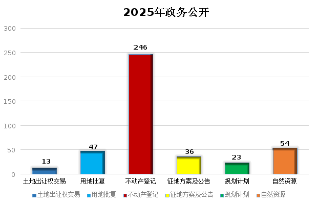 持续做好基层政务公开标准化规范化工作。通过政府门户网站对《开阳县自然资源局关于《开阳县征收农村村民住宅以及其他地上附着物、青苗补偿标准》、《开阳县2025年地质灾害防治工作方案》等文件进行政策解读。更新完善本单位的单位职责、领导之窗(领导分工、领导简历)、机构设置、政策文件等信息。土地出让权交易、用地批复、征地方案及公告、规划计划、不动产登记、自然资源等公开信息419条。
