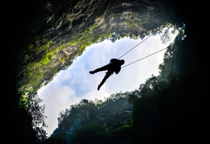 猴耳天坑景区内集天坑(坑口直径300米、坑深280米、坑底最大直径280米,属标准竖井式天坑)、峭壁、暗河、飞瀑于一体,融奇、险、秘、幽于一炉。现开发的“超级大秋千”、“水上扁带”、“垂直极限”、“云端漫步”、“洞穴探险”等各具特色的极限运动体验项目极具吸引力,并成为“抖音”评选的全国年度县域网红景点排名之首,激情的运动项目体验使得猴耳天坑被评为2019中国体育旅游精品景区。
