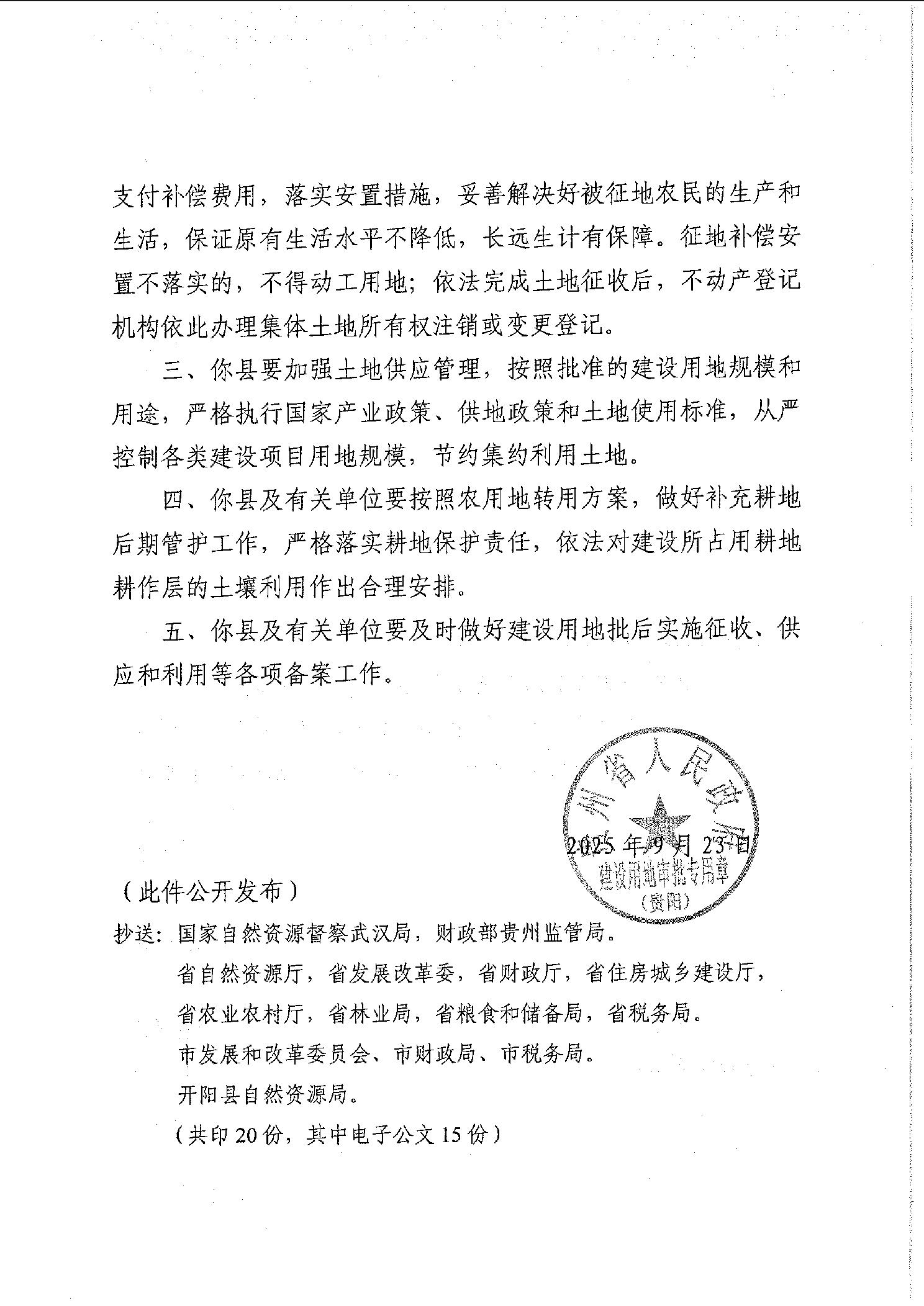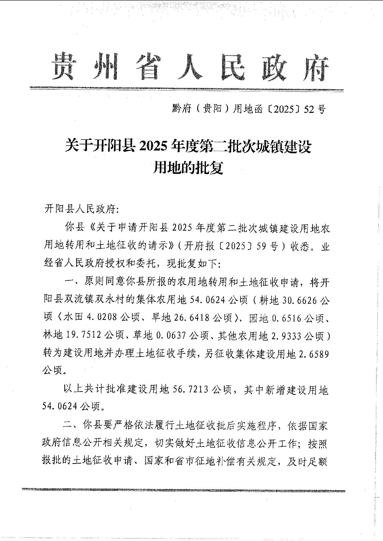 黔府(贵阳)用地函〔2025〕52号-贵州省人民政府关于开阳县2025年度第二批次城镇建设用地的批复