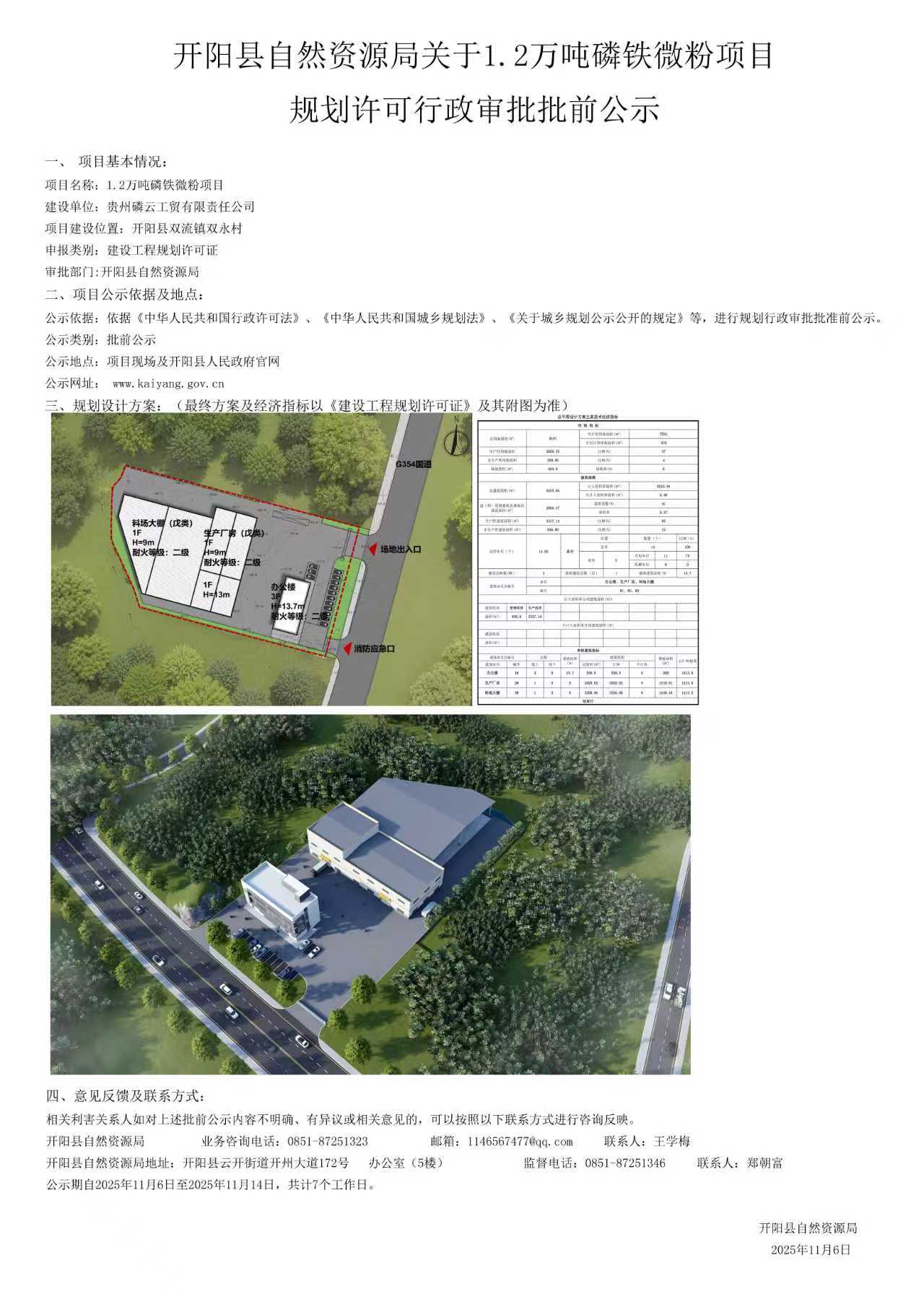 开阳县自然资源局关于1.2万吨磷铁微粉项目规划许可行政审批批前公示.jpg