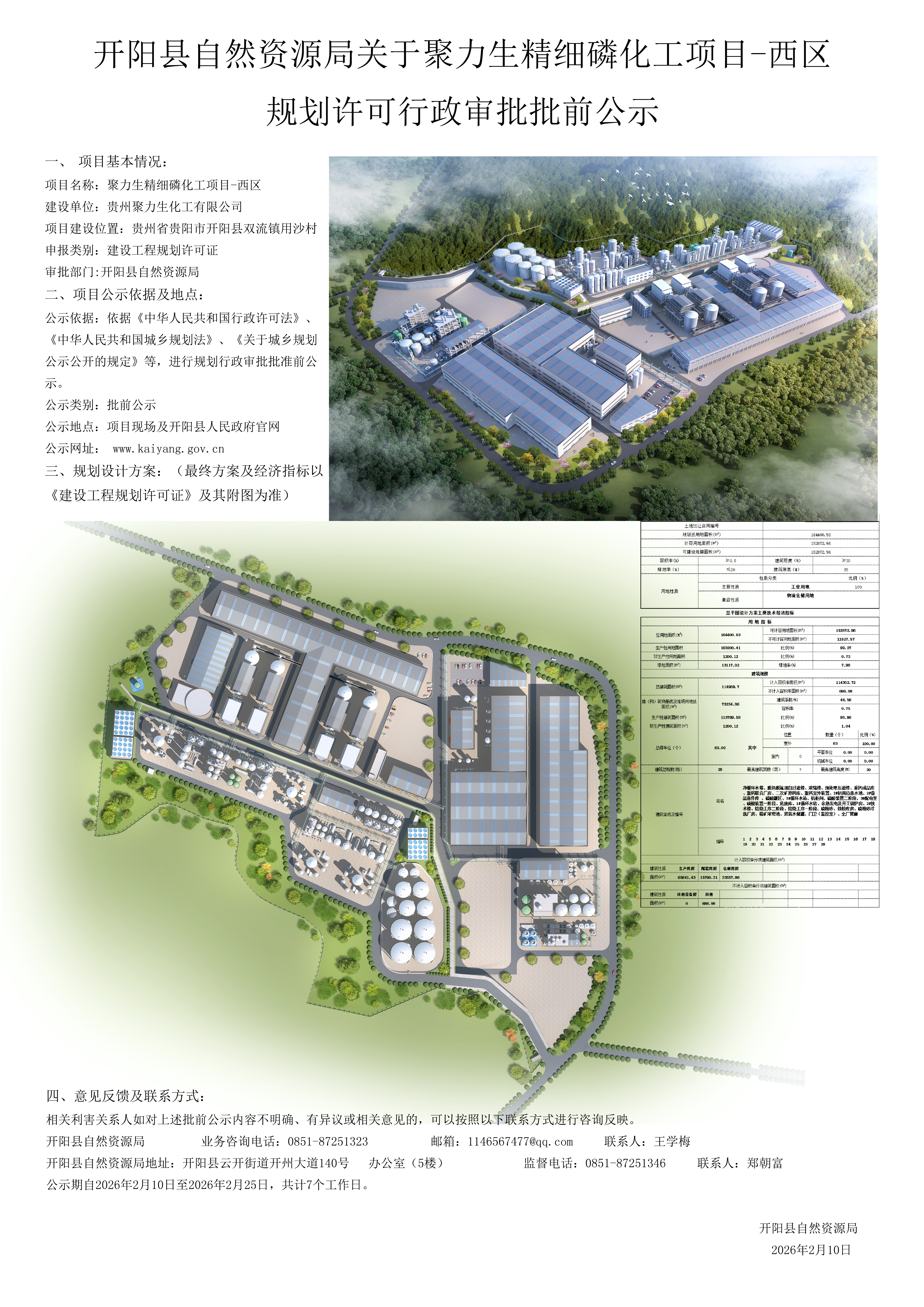 附件:开阳县自然资源局关于聚力生精细磷化工项目-西区规划许可行政审批批前公示