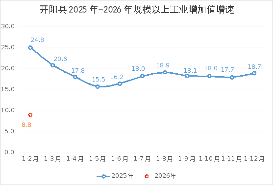 一、工业生产保持增长。1-2月,全县规模以上工业增加值累计同比增长8.8%。