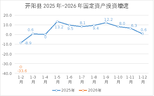 二、固定投资同比下降。1-2月,全县固定资产投资同比下降33.6%。