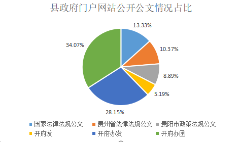 主动公开。一是转载公开国家法律法规公文、贵州省法律法规公文、贵阳市政策法规公文及我县公文135条,其中国家法律法规公文18条,占13.33%;贵州省法律法规公文14条,占10.37%;贵阳市政策法规公文12条,占8.89%;“开府发”文件7条,占5.19%;“开府办发”文件38条,占28.15%;“开府办函”文件46条,占34.07%。