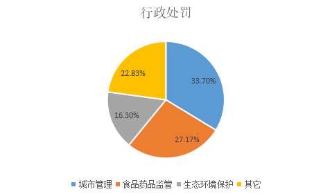 六是公开行政处罚相关信息92条,其中城市管理行政处罚31条,食品药品监管行政处罚25条,生态环境保护行政处罚15条,其它相关行政处罚21条。