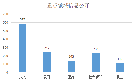十一是及时公开扶贫、教育、医疗、社会保障、促进就业等相关信息,2019年共公开扶贫相关信息587条,教育相关信息247条,医疗相关信息143条,社会保障相关信息233条,促进就业相关信息117条。